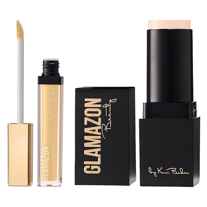 Glamazon Second to None Foundation Stick + Concealer Bundle, Praline Dream & Alabaster, Lightweight Buildable Coverage, Long-Lasting Full Coverage Brightening Concealer