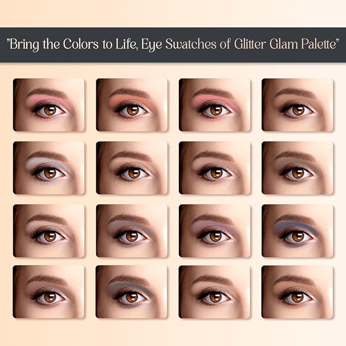 Profusion Cosmetics Glitter Glam Eye and Cheek Palette, 16 Vibrant Matte and Shimmer Shades for Stunning Color, Includes 1 Pro Makeup Brush