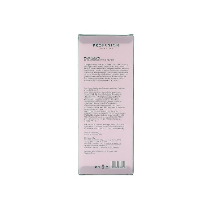 Profusion Cosmetics Matcha Love Duo Correcting Setting Powder with Kabuki Brush, Green and Pink Shades for Redness Elimination and Radiance