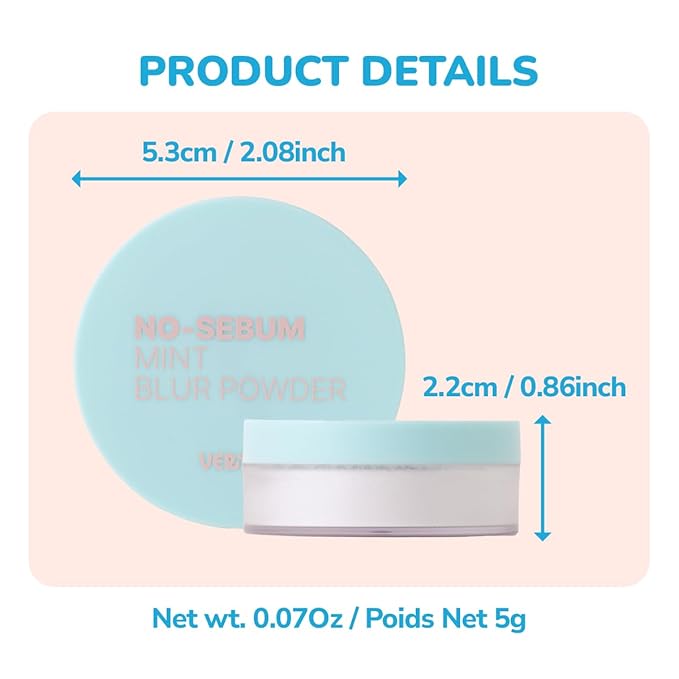 VERTTY No-sebum Blur Powder (0.9 Oz) | Vegan loose face Powder, Matte Finish | Oil Control & Makeup Setting, For all skin type, K-Beauty | Cruelty Free