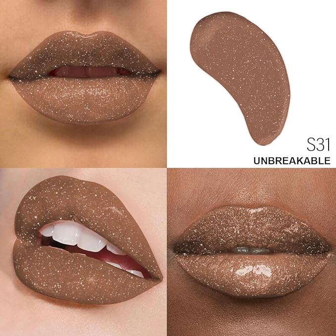 - HIGH-SHINE & SHIMMER EFFECT: Our “ Unbreakable ” Shimmer Lip Gloss delivers a dazzling, ultra-glossy finish with a radiant shimmer that enhances your lips’ natural beauty. Infused with micro-shimmer particles, this non sticky lip gloss gives your lips a sparkling, mirror-like shine that catches the light, making them look fuller and more youthful, perfect for any occasion.