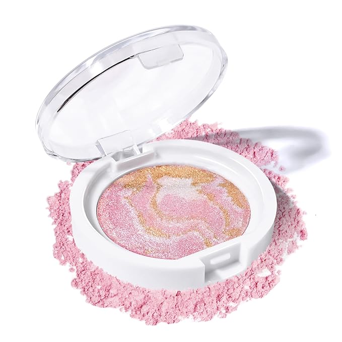 - 【High Glossy Finish】The unique embossed design and ultra-fine shimmering formula create amazing breakthrough hues. Super glossy pigment baked powder that blends easily and evenly, with high glow for a natural pink shimmer finish.
