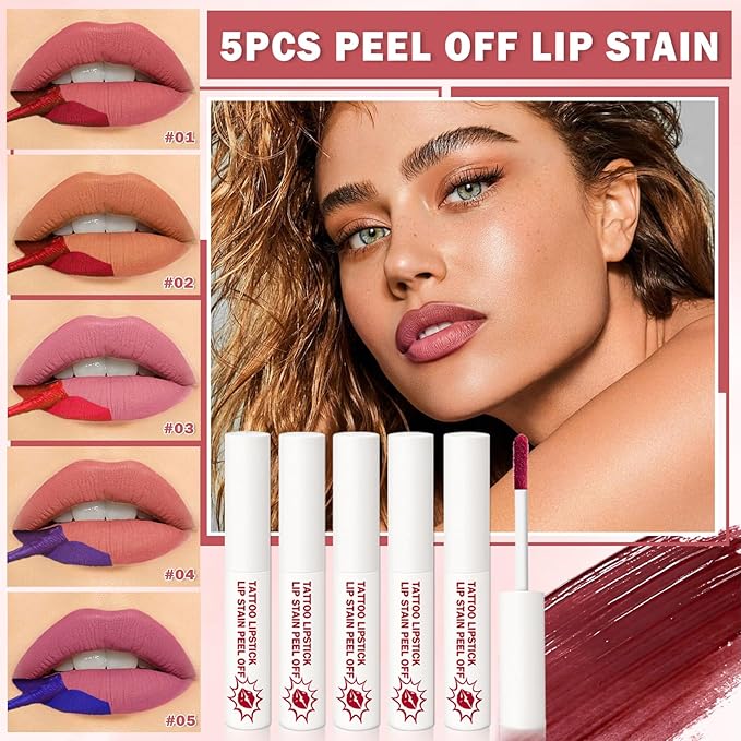 - 【Peelable Lip Stain】Lip stain peel off is available in 5 natural and soft nude shades. These colors are carefully formulated with highly pigmented, which can present a vivid and attractive effect on the lips, making your lips the focus of the entire makeup