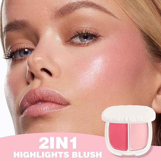 - 2-IN-1 PEARL BLUSH HIGHLIGHTS: This highlighter and blush combo instantly sculpts, defines, and highlights in one sweep. Each duo has two colors that complement every skin tone. 8 combo is available, a delicate and stereo makeup finish is no longer hard to get!