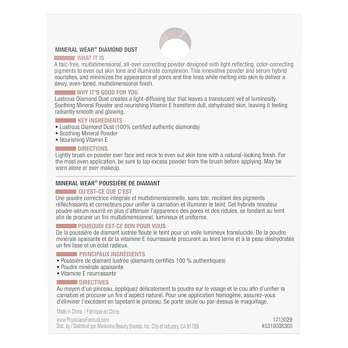 Physicians Formula Mineral Wear Diamond Dust, Radiant Soft-Focus Finish, Talc-Free Powder & Serum Hybrid with Diamond Dust & Vitamin E, Cruelty-Free & Vegan-Luminous Corrector