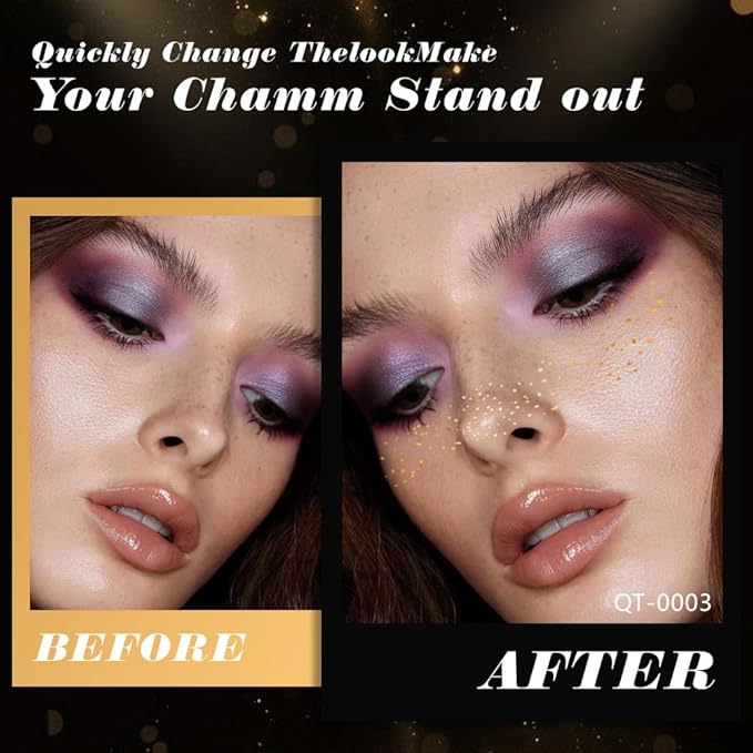 - LONG-LASTING EFFECT - With our makeup glitter speckle patches, you can up your beauty game and look flawless from dawn to dusk.These cosmetic glitter patches blend perfectly with your skin, maintaining your speckled appearance all day. Our glitter face patches give you the power to look gorgeous and radiant for hours on end, whether attending a party or another event
