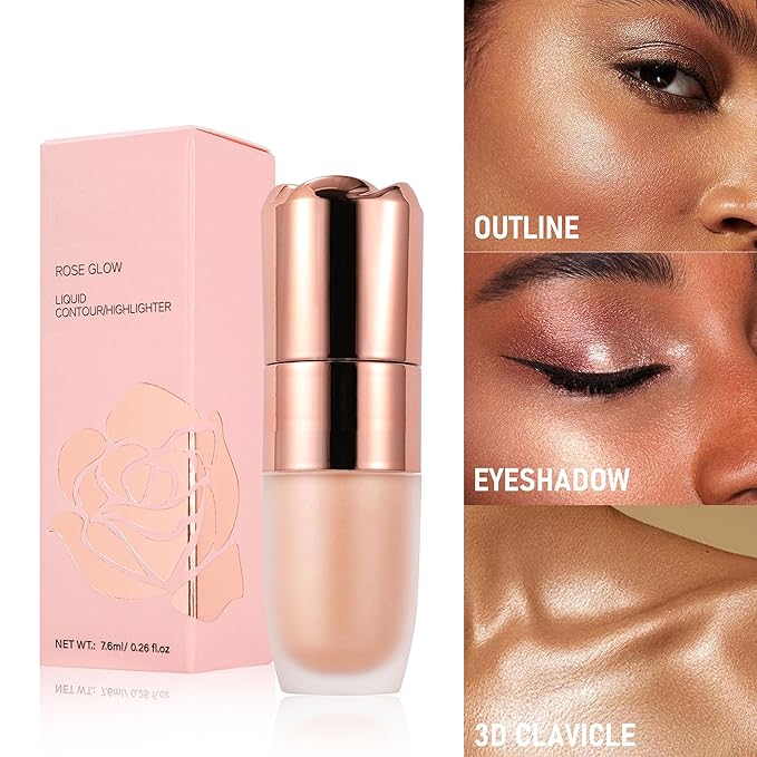 - 【Create 3D Makeup Effect】Liquid Glitter Highlighter has a shimmering highlighter to give skin a warm, natural glow. It melts beautifully into skin, never feeling sticky or greasy, and gives skin a revived and youthful look.