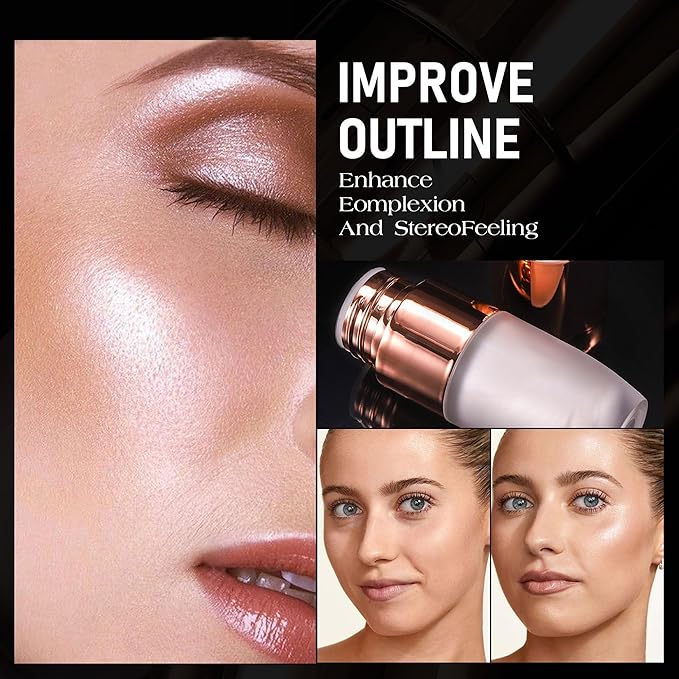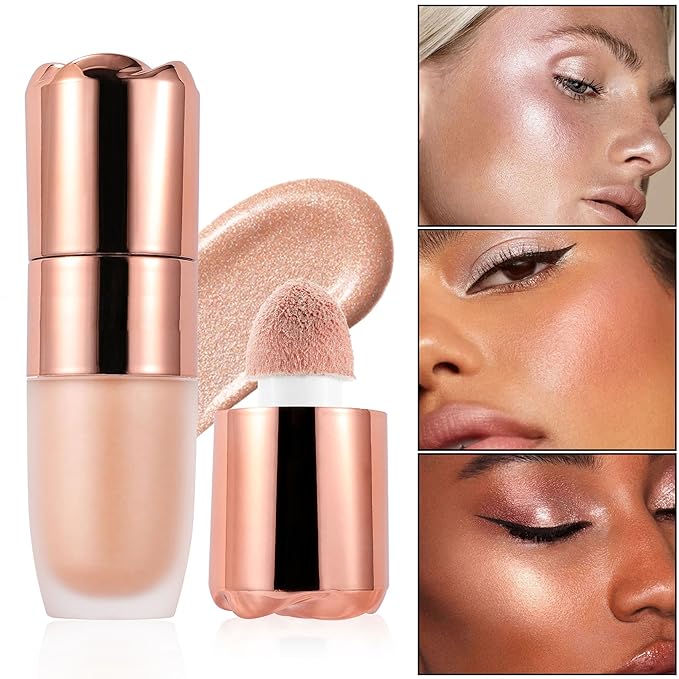 - 【Create 3D Makeup Effect】Liquid Glitter Highlighter has a shimmering highlighter to give skin a warm, natural glow. It melts beautifully into skin, never feeling sticky or greasy, and gives skin a revived and youthful look.