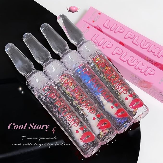 COOL STORY Glitter Lip Fuller Gloss, Moisturizing Hydrating Lip Serum, Fuller Lip Care, Lip Plumping Oil for Women Clear 4 Color