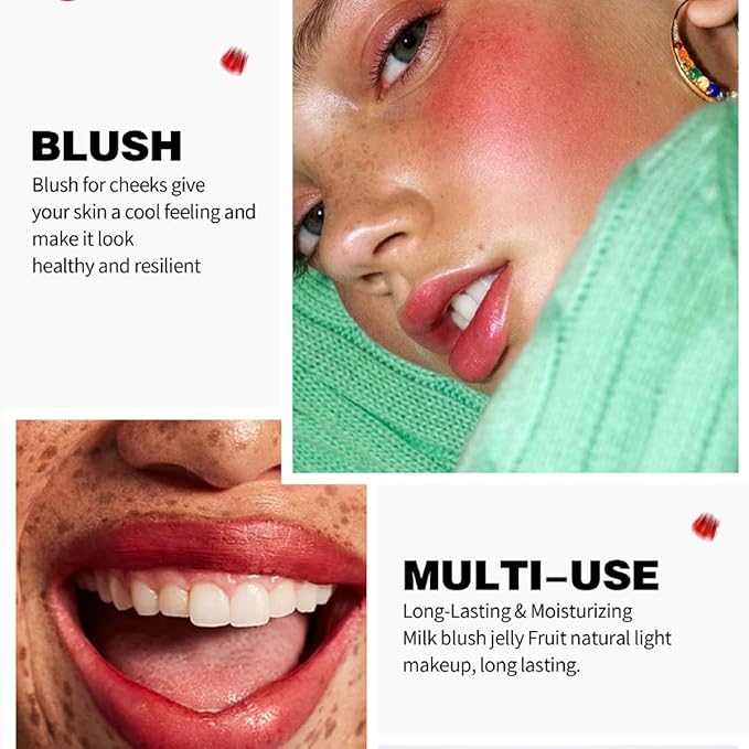 5 Colors Hydrating Lip & Cheek Tint, Long-Lasting Jelly Blush Stick with Cooling Effect, Watercolor-Like Finish (# 01)