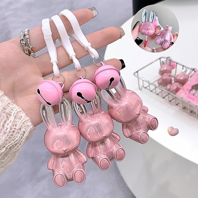 - 【Adorable Bunny Design & Keychain Convenience】These lip stains come in a super cute bunny-shaped package, making them a fun and stylish accessory. Each lip gloss is attached to a keychain, so you can easily clip it to your purse, keys, or backpack for on-the-go touch-ups.