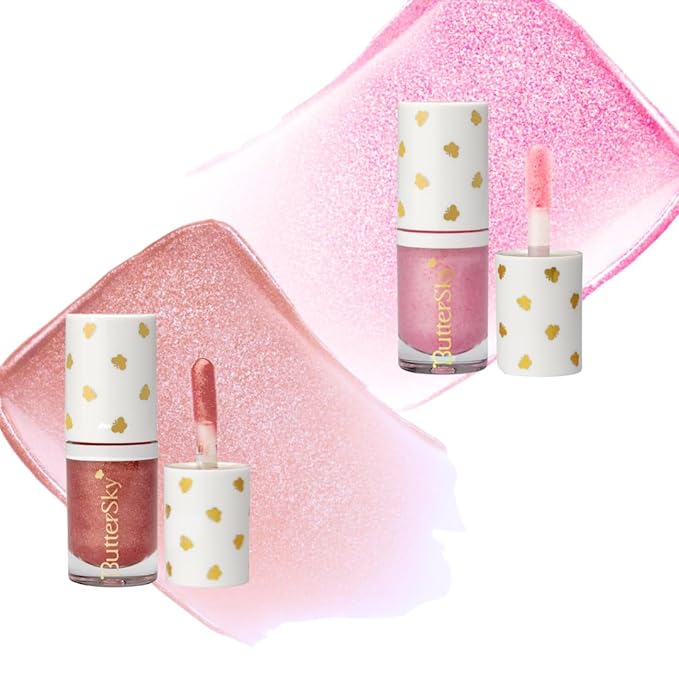 - ButterSky Mini Lip Duo: Ticklish & Pink-a-Boo Ticklish: A rosy gold shimmer that adds warmth and glow to any look. Pink-a-Boo: A shimmery touch of pink for the perfect kissable pout. Compact, travel-friendly sizes for on-the-go glam. Vegan, cruelty-free, and made with eco-conscious ingredients. Key Features: 7 super ingredients to keep your lips nourished, hydrated, plump and glowing. Shea Butter, Jojoba Seed Oil, Coconut Oil, Grape Seed Oil, Avocado Seed Oil, Sunflower Seed Oil, Mango Seed Butter