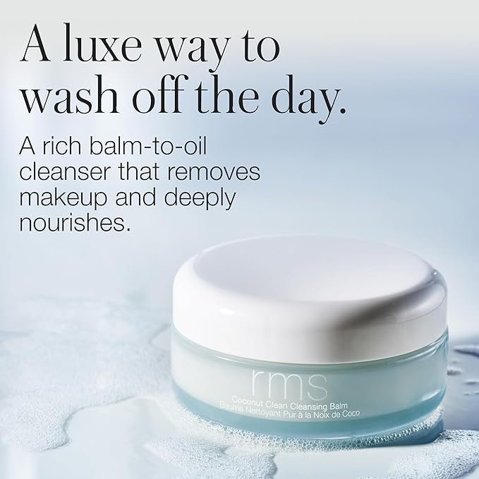 RMS Beauty Coconut Clean Cleansing Balm - Balm to Oil Cleanser with Organic Coconut Oil, SPF & Makeup Remover, Silicone-Free Hydrating Facial Cleanser, Hypoallergenic, Clean Beauty