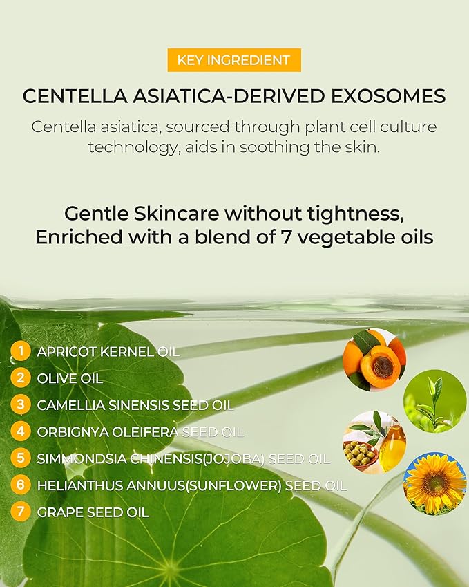 - RICH BLEND OF NATURAL OILS FOR SKIN HEALTH: Infused with Jojoba Oil, Centella Asiatica, Sunflower Seed Oil, Sweet Almond Oil, and Olive Oil, this cleansing oil provides deep hydration and nourishment. Each ingredient is selected for its ability to support skin health and soothe irritation, making it perfect for daily use.