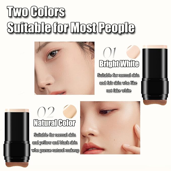 Double Head Tinted Moisturizer Foundation Stick | 2 in 1 Anti-Wrinkle Foudation Stick | Built-in Brush,Light and Buildable | Nature+White