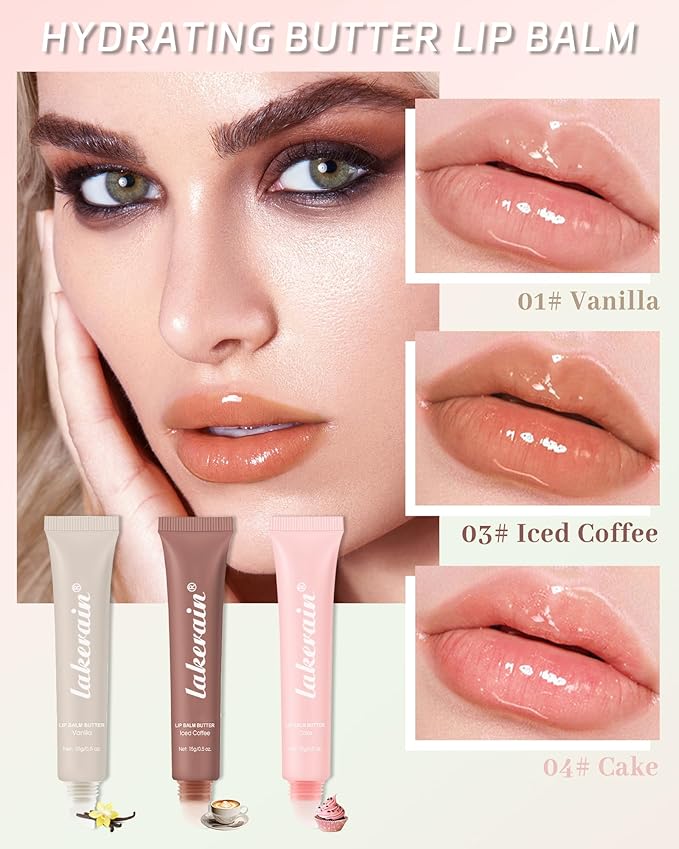 Hydrating Tint Summer Lip Butter Balm-3 Color Vanilla Clear Sheer Beige Brown Pink Sugar Glossy Lip Gloss,Moisturizing Non-Sticky Jelly Lip Moisturizer,Glow Reviver Lip Care Oil,Gift for Women-Set D