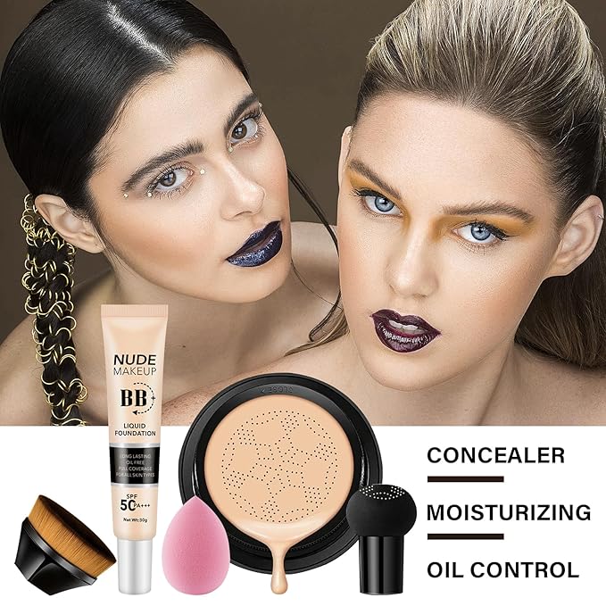 - Easy Coverage and Concealer: The full coverage foundation has an enviable long-lasting concealer formula, the mushroom head air cushion foundation is designed with a skin-friendly elastic bionic film that is easy to press out for an even and silky foundation, makeup is time-saving and quick, very convenient to apply for both makeup novices and professional makeup artists