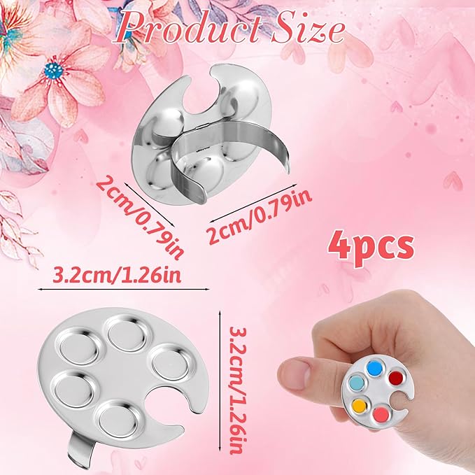 4 Pack Mini Nail Art Palette, Nail Rings Palette, Finger Rings Metal Manicure Palette Tools, Nail Polish Mixing Plate, Gel Palette Manicure for Nail Art Display