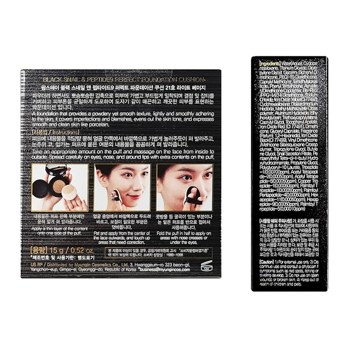 - [KOREAN CUSHION FOUNDATION WITH NOURISHING INGREDIENTS] Farmstay Black Snail & Peptide 9 Perfect Cushion is a skin-loving foundation infused with Black Snail Extract and Peptide 9 Complex, helping to moisturize and refine skin texture while delivering a flawless complexion.