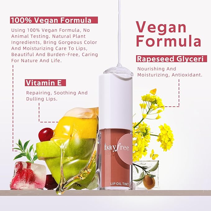 - CRUELTY-FREE & NOURISHING: Infused with Vitamin E and canola seed glycerin, this tinted lip oil is designed to provide antioxidant benefits and help improve the appearance of dull, dry lips. Its gentle formula aims to offer comfort throughout the day.