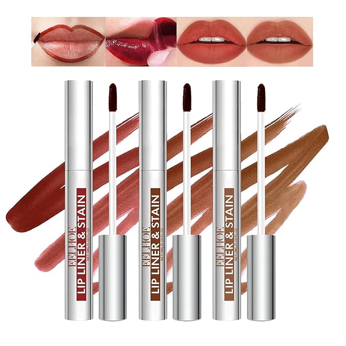 Lip Stain Peel Off, 3 Pcs Peel Off Lip Liner Stain Set Lip Tint Stain Peel Off Lip Stains for Women Peel Off, Waterproof Long-Lasting Lip Stain Peel off Tint Tattoo, Transfer-proof No Smudging