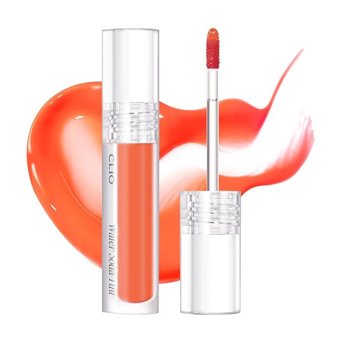 CLIO Water Soda Tint 5 Colors, Korean Lip Stain, High Moisturizing, Strong Hydrating Water Lip Oil, Gloss, Non Sticky Lip Stain, K-Beauty Lips (03 TANGERINE POP, One Size)