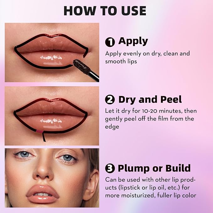 - 【INNOVATIVE PEEL-OFF TECHNOLOGY】- Skip the sharpening—our peel off lip liner stain simplifies your routine. Apply evenly, let it dry for 10-20 minutes, and gently peel for a precise, semi-permanent stain. NOTE: Please keep your lips clean, dry and smooth before applying, wait for it to dry before peeling, do not use on chapped or damaged lips