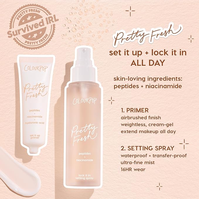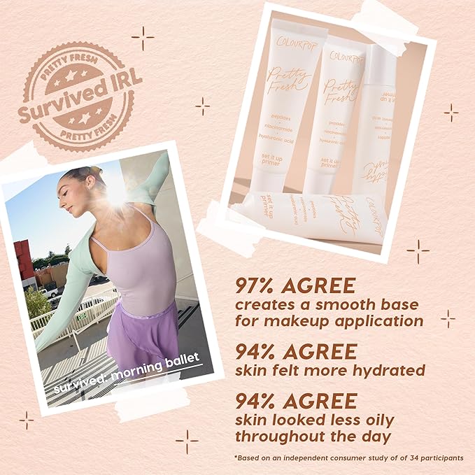 ColourPop Pretty Fresh Airbrush Makeup Primer - Hydrating, Gel-Cream Face Primer & Pore Minimizer with Peptides, Niacinamide & Hyaluronic Acid - Vegan & Cruelty-Free - Set It Up (1 Fl Oz)