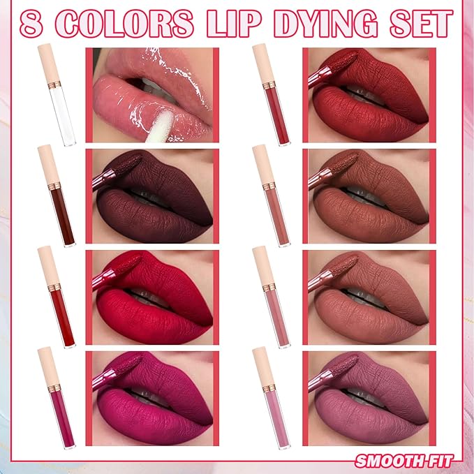 8 Colors Lip Tint Stain Set,Mini Liquid Lipstick Moisturizing Long Lasting Plumping High Pigmented Lip Gloss Set,Lightweight Non-Stick Cup Matte Lipstick for Waterproof Cheek and Lip Tint Makeup