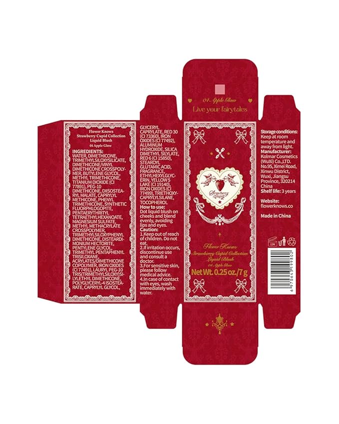 Flower Knows Strawberry Cupid All Day Glow Liquid Blush,Water- & Sweat-Resistant Blush for Cheeks,Blendable Dewy Finish with Hydrating Formula(04 Apple Glow,0.25 Fl Oz)