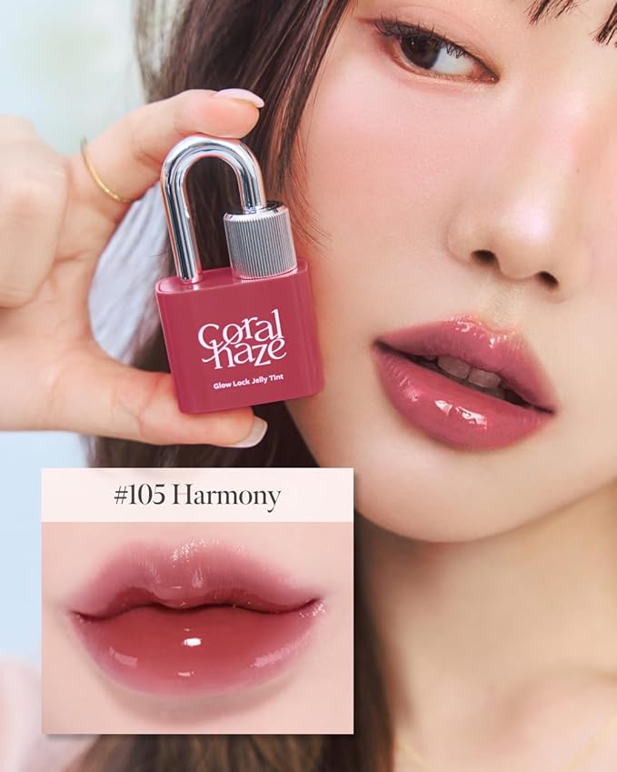 CORLAHAZE Glow Lock Jelly Tint 105 Harmony 4g, Hydrating Jelly Glow Lip Stain, High-Shine, Long-Lasting Color Moisturizing Lip Enhancer with Rosehip Oil, Collectible Lock-Shaped Design, Korean Makeup