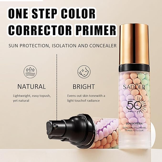 - High-End Design: Color correction primer travel size, a bottle of three color design, different colors have different makeup effects, not only to meet the daily needs, whether you are going out for a trip, or to participate in birthday parties, dances and other occasions, can be your best choice!