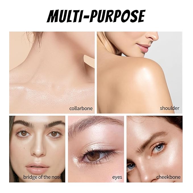 - Versatile Dewy Highlighter Stick: This highlighter stick can be used not only on the cheeks, brow bone, forehead and lips, but also on the neck, collarbone and any other area you want to brighten. Experience the glamour of translucent finish to enhance the natural radiance of your skin