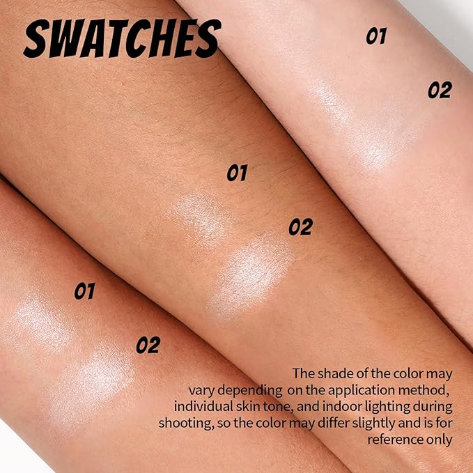 - Smooth & Lightweight Texture: Lightweight and smooth texture blends into the skin immediately after application, easy to blend and adhere to the skin, just one swipe to colour, easy to create a natural shimmering look, so you become the focus of the sparkle. Whether you are a beginner or an expert this hydrating highlighter is the ideal choice