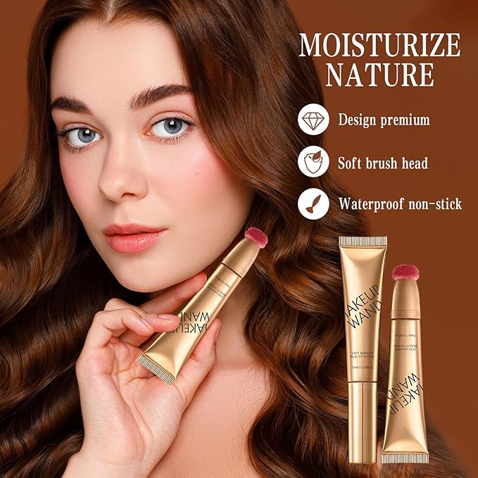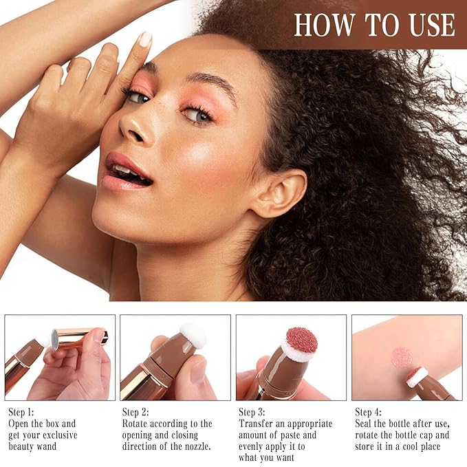 Contour Wand and Blush Wand, 2 in 1 Contouring Wands, Waterproof and Sweat Proof Makeup Stick for Women, Beauty Sticks for Cheeks, 2 in 1 Blushs with Applicator (Blush Wands, 0.66 Fl Oz)