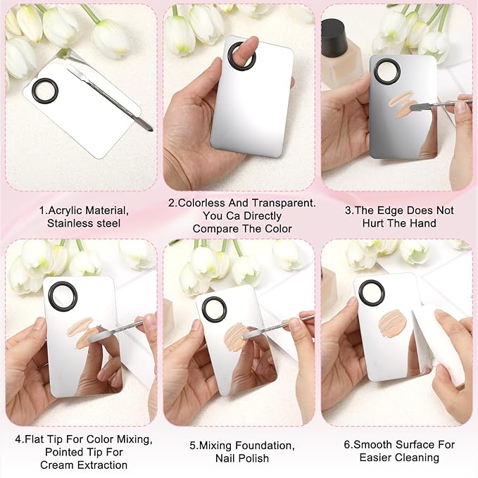 - High Quality Materials: Our makeup tool set are made of high quality stainless steel to ensure long-lasting durability. Both the makeup mixing palette and the makeup stick have a smooth surface and are guaranteed not to rust or wear