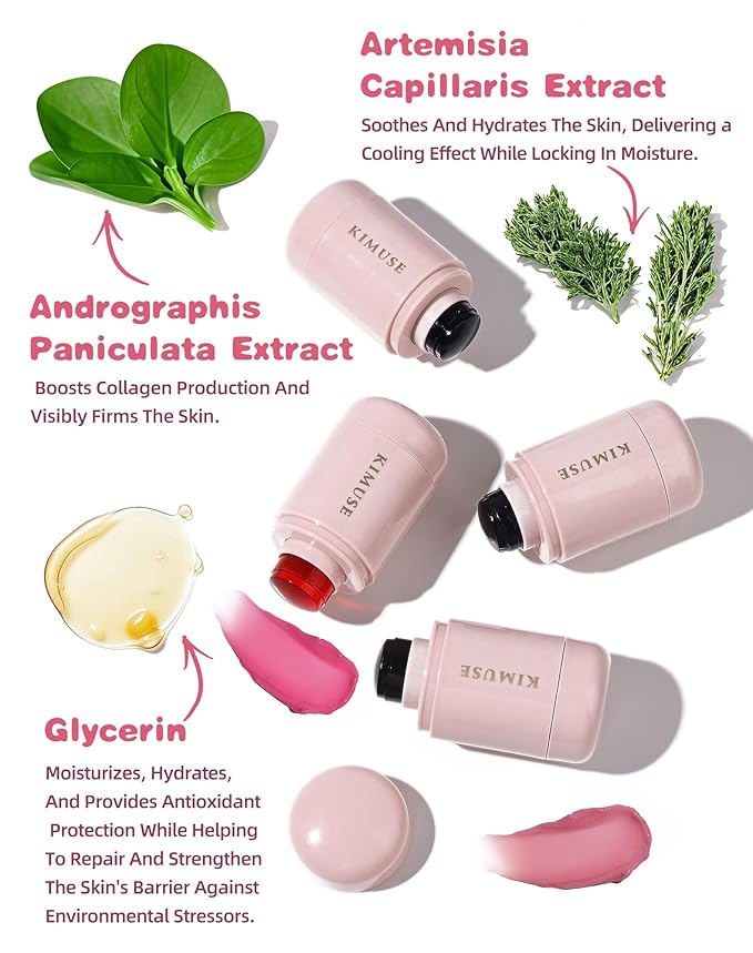 - GENTLE & NOURISHING FORMULA: KIMUSE jelly cheek & lip tint is infused with Andrographis Paniculata Extract to firm the skin, Glycerin for deep hydration and barrier protection, and Artemisia Extract to cool and lock in moisture Paraben-free, vegan, and cruelty-free.