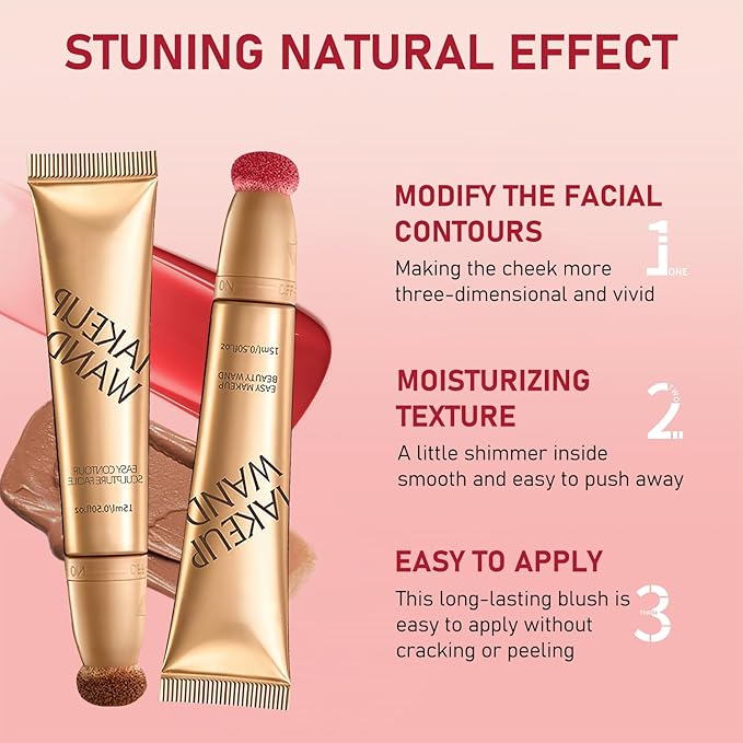 Summaryas Contour Wand & Blush Wand Duo, 2025 New 2 In 1 Women Contour Beauty Wand, Liquid Blush Wand With Applicator, for Skin Highlighting, Correcting (Contour Wand, 1pc)