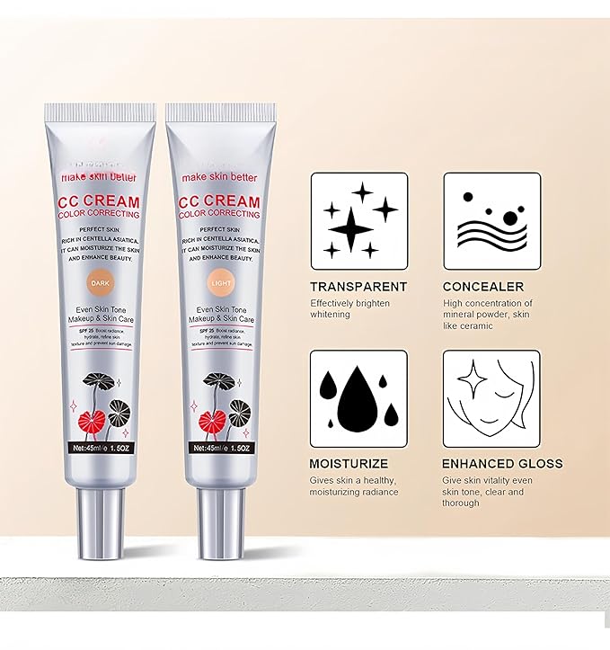 - 【Diversified Functions】This CC cream is multi-tasking color correcting cream, which helps to enhance skins natural radiance with light but buildable coverage. Correct your skin tone and create a light and transparent makeup easily. Conceal your pores, cover your blemishes, and create a naturally perfect skin condition.