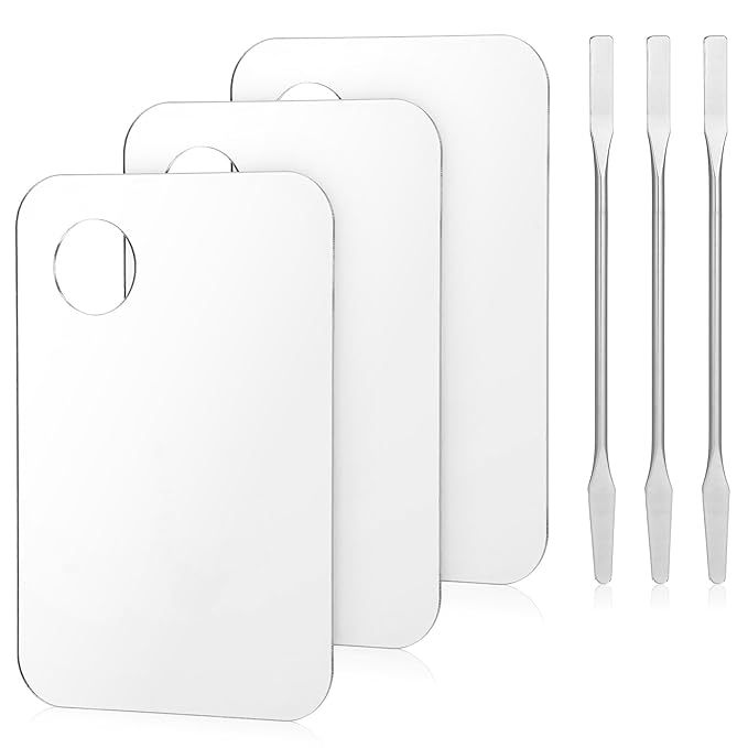3 Pices Acrylic Makeup Palettes, 3pcs Cosmetic Palette with 3pcs Spatula Makeup Palette Mixing Tray for Foundation Eye Shadow Lipsticks Foundation Lipsticks (Rectangular)