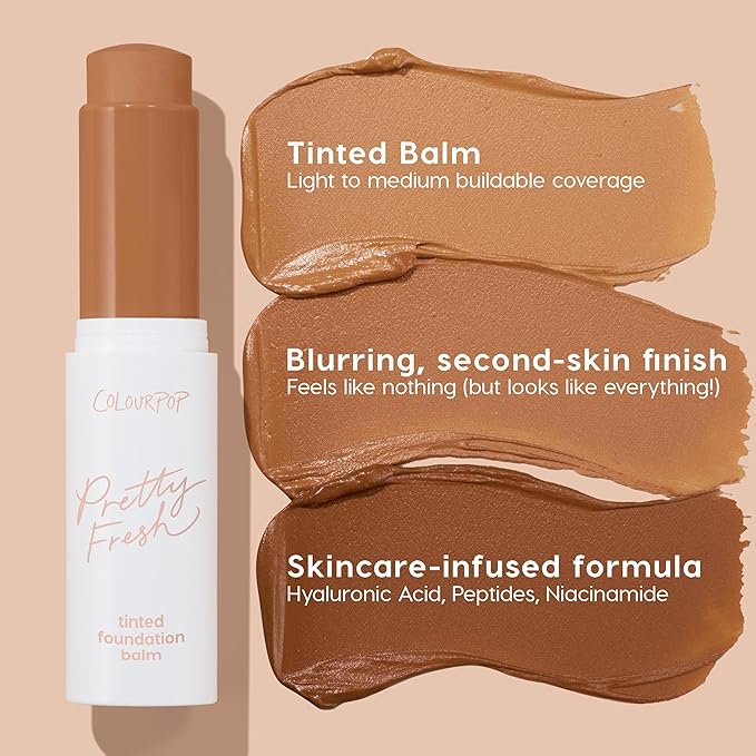 ColourPop Pretty Fresh Tinted Foundation Stick - Balm to Cream Foundation with Light to Medium Coverage - Infused with Hydrating Hyaluronic Acid, Peptides & Niacinamide - Dark 17 (0.29 oz)