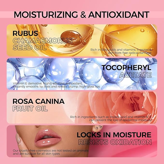 - Moisturizing Lip Glow Oil smoothes and enhances lip contour for a fuller look,repairs the lips, lightens the lip line.This lip glow glides on easily and evenly, leaving your lips with a high-shine, glossy finish that enhances their natural beauty.