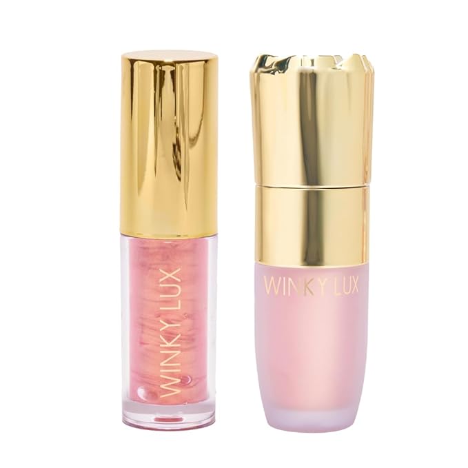 Winky Lux Pink Opal Lip Oil & Pink Opal Liquid Highlighter Duo – Hydrating& Nourishing Lip Care, Infused with Ceramides & Jojoba Oil, Subtle Vanilla Scent, Vegan & Cruelty-Free