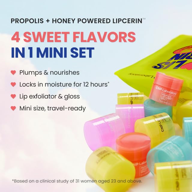 CNP Honey Lip Butter Mini Set – Propolis Lipcerin™ Travel-Size (4 Flavors), Hydrating Overnight Manuka Lip Balm & Mask, 12hrs Long-lasting Moisture, Gifts for Women, Korean Skincare